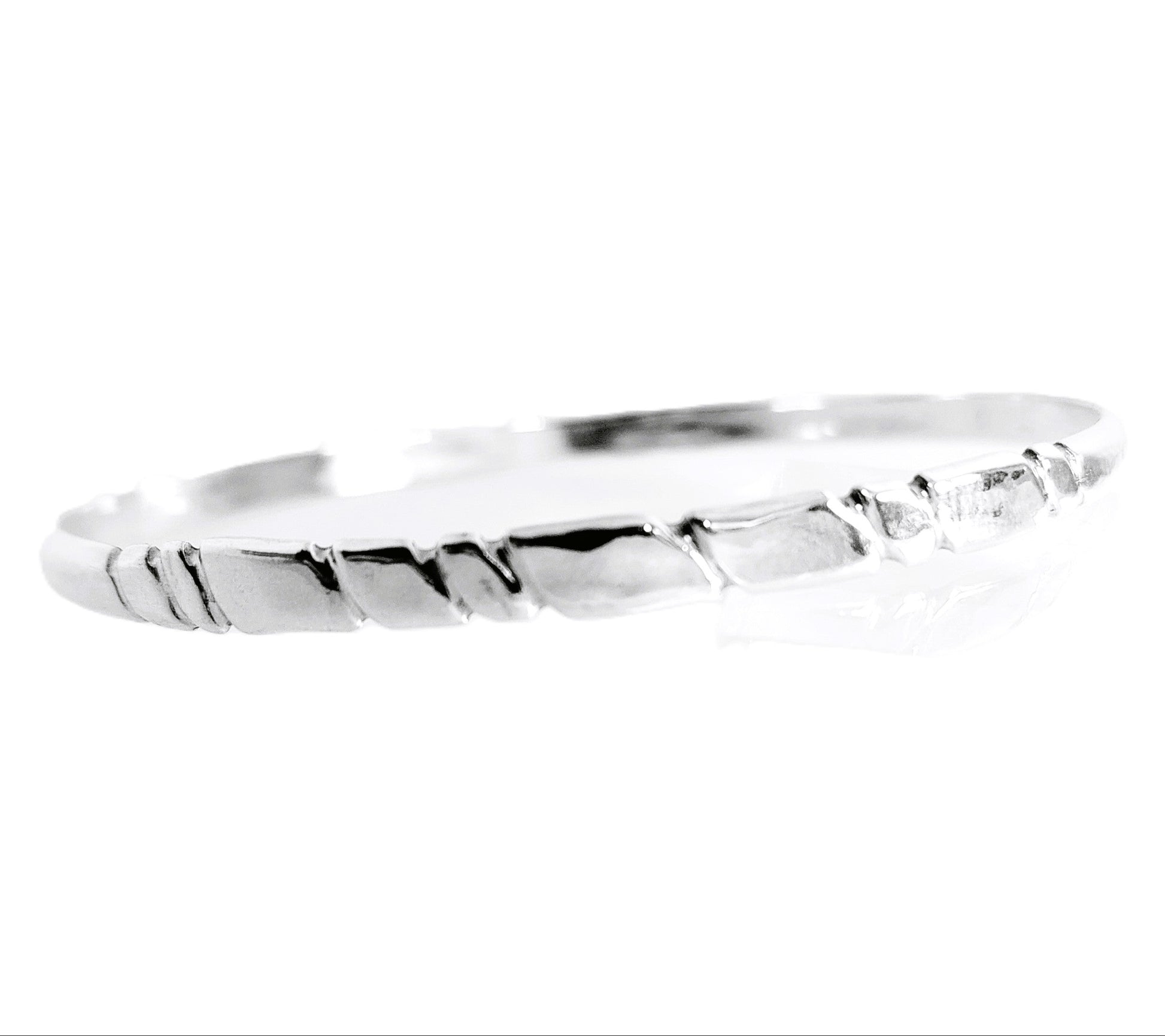 Sculpted from solid ethical 925 sterling silver, the Tracks Bangle is a bold yet refined statement piece, handcrafted in Tasmania, Australia.